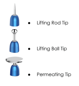 The lifting ball and lifting tip attachments are high-voltage, mono-polar probes responsible for the lifting, tightening and rejuvenation effects of the treatment.